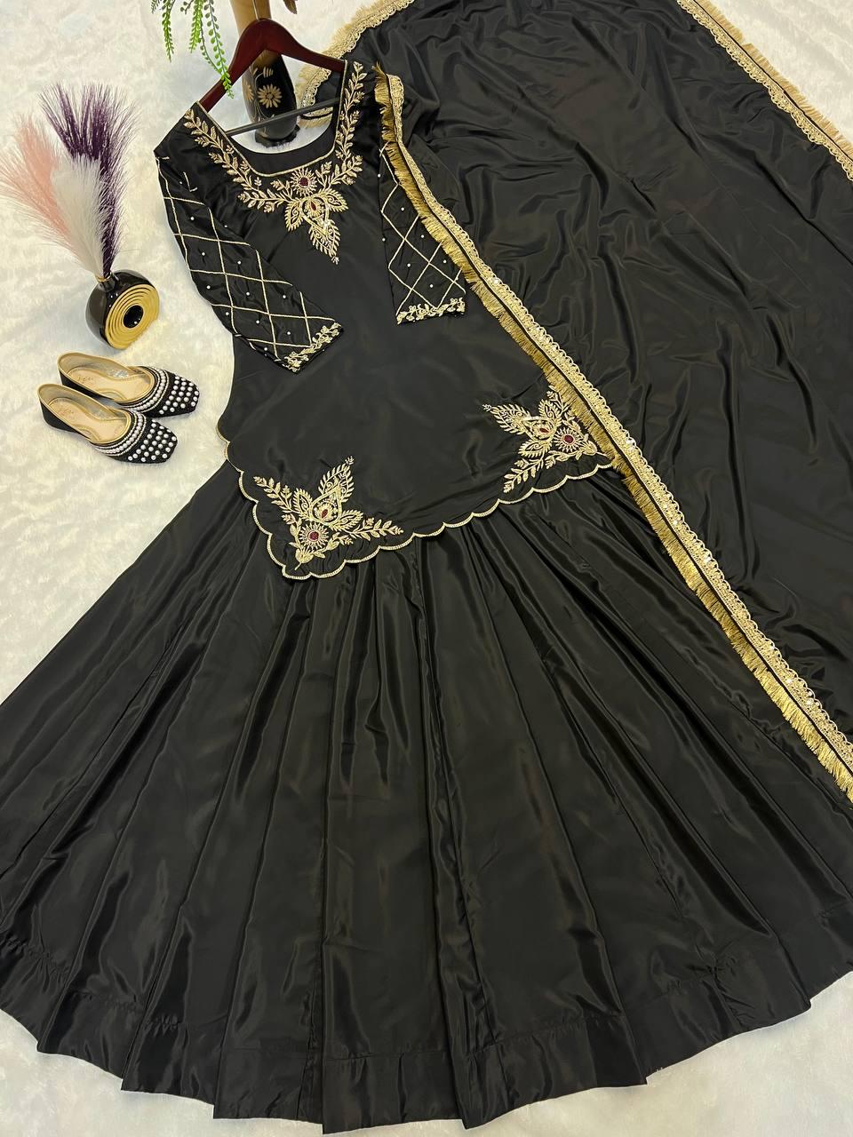 Elegant Black Embroidered Crepe Silk Lehenga Set β Fully Stitched | Zariiyaa
